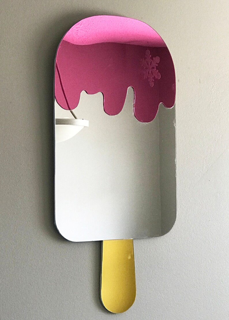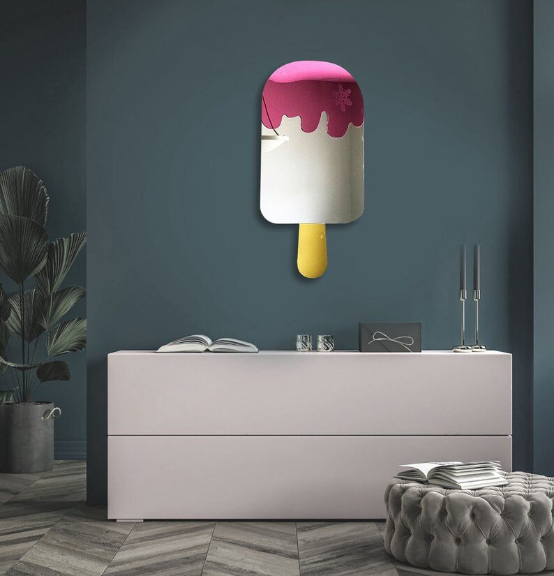 Inspired by the image of a popsicle, this acrylic mirrored wall decor blends utility with artistry. The pink upper portion resembles melted icing, adding interest and movement to the piece. The mirrors are carefully polished to provide not only a practical reflective function, but also interact with the environment through a mirroring effect, enhancing the layering and visual depth of the space. The brightly colored golden popsicle handle at the bottom contrasts with the overall design, providing a pleasant visual experience. This wall decoration is not only suitable for modern home environments, but also ideal for use as a decorative piece in creative studios, children's rooms or public spaces, adding a sense of vitality and artistry. Whether hung on the wall or displayed as a stand-alone piece of art, it can be a focal point that attracts attention and injects a sense of sweetness and fun into the space.