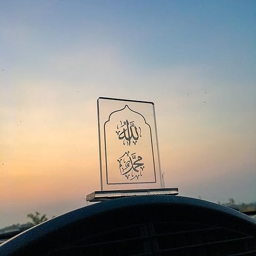Acrylic Islamic Car Stand For Dashboard - Allah And Mohammed Transperant