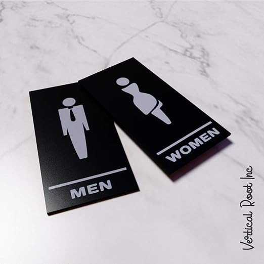 HIGH CONTRAST COLORS, super bold fonts, and simple graphics to reach an eye catching and high impact communication, this highly visible signs make your Restroom Men & Women message is hard to miss.