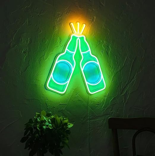 Bar Beer Bottle Neon light Sign for home bar cafe neon sign for wall decor (12 X 12 Inches)