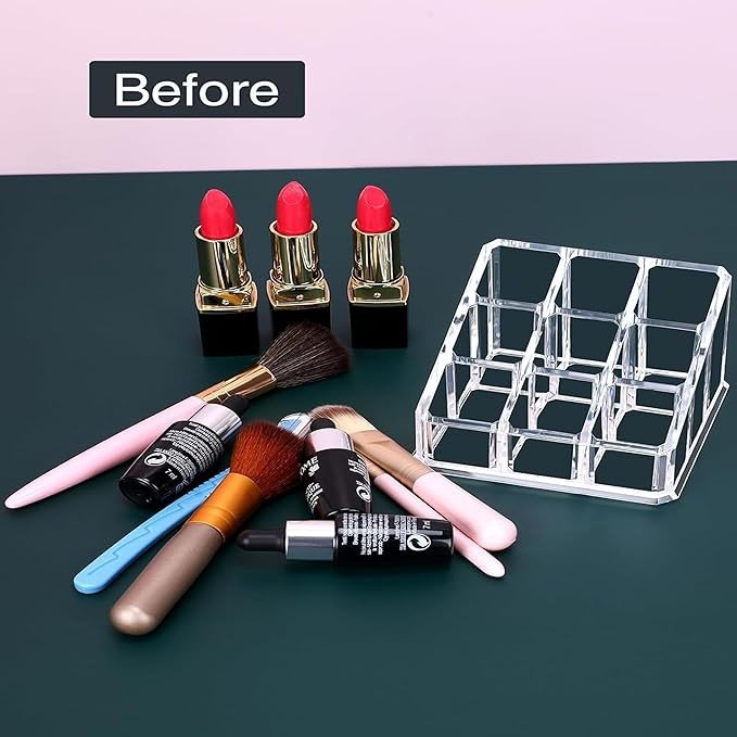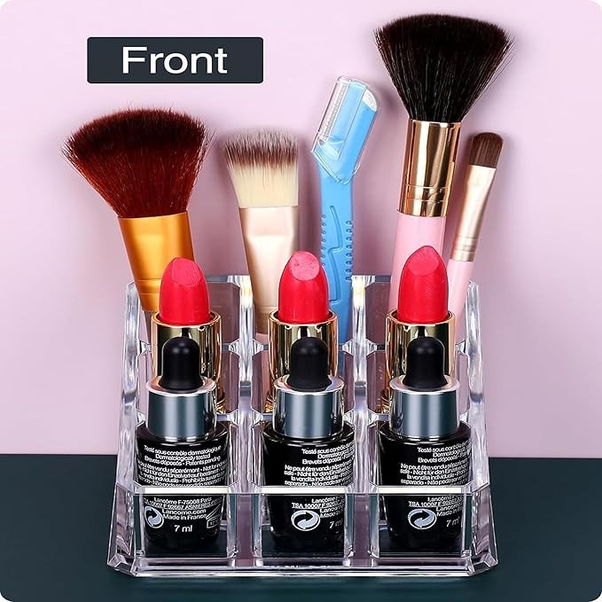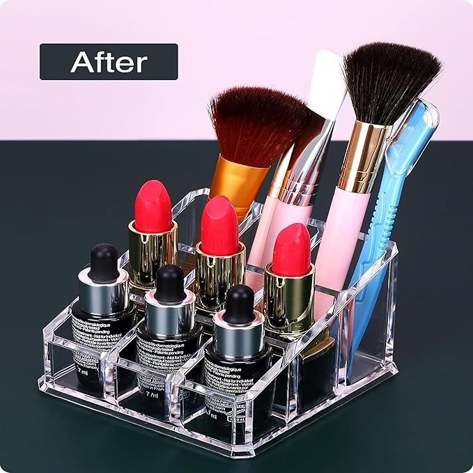 9 storage spaces are ideal for storing your lipsticks, lip glosses, lip moisturisers, nail polish, makeup brushes or other Cosmetic, this makeup organizer keeps everything organized in one location.