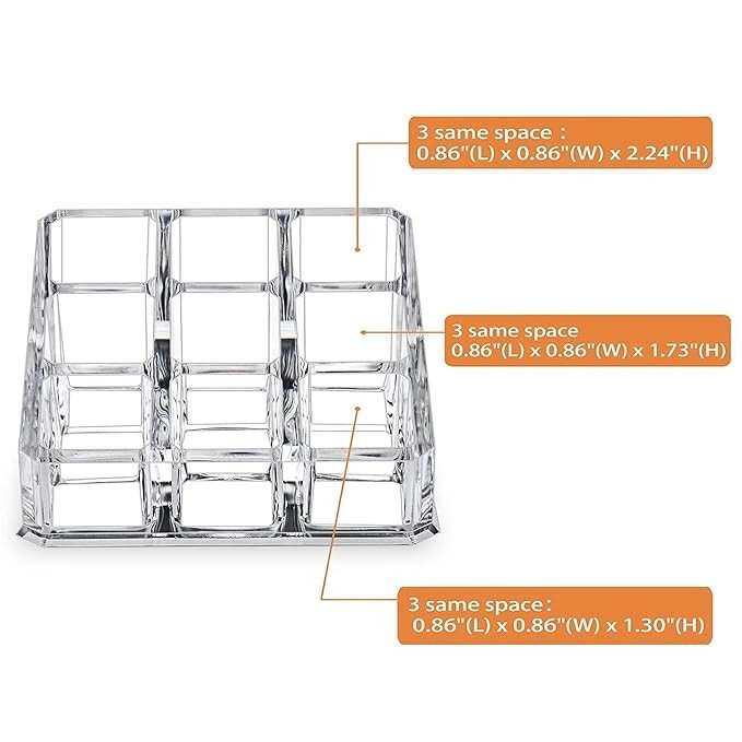 The lipstick organizer is for storage and organization of your cosmetics in your vanity, bedroom, countertop. Also great as gift for Christmas, Valentine’s Day, Mother’s Day, birthdays, and others.