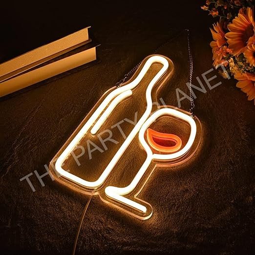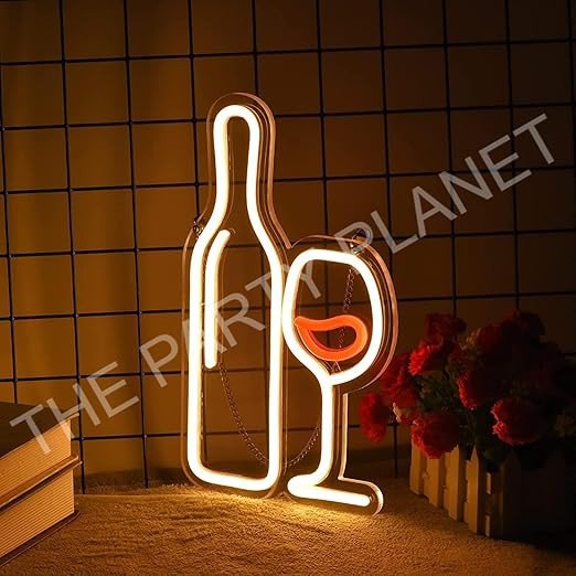 Bottle And Goblet Led Neon Signs Beer Bar Club Bedroom Neon Lights For Office Hotel Pub Cafe Wedding Birthday Party Man Cave Night Light Art Wall Lights 13" X 7.5"