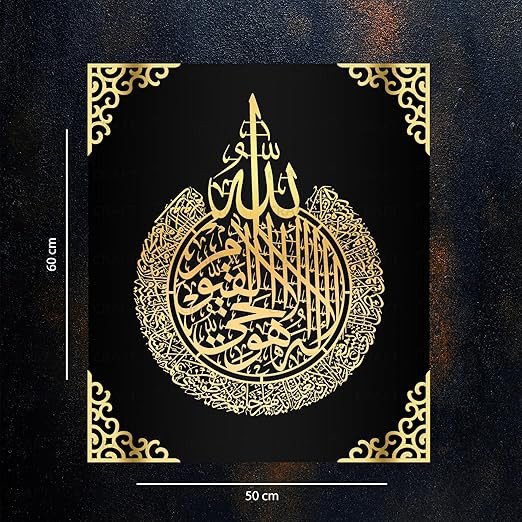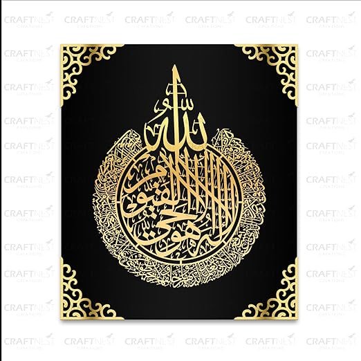 Elegant Islamic Calligraphy: Features Ayatul Kursi in refined Arabic calligraphy, adding spiritual ambiance and aesthetic charm.