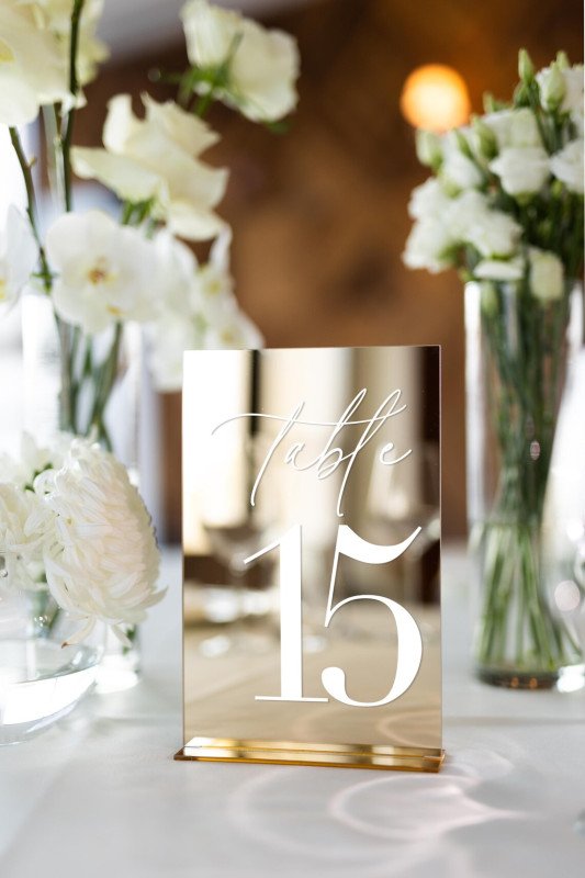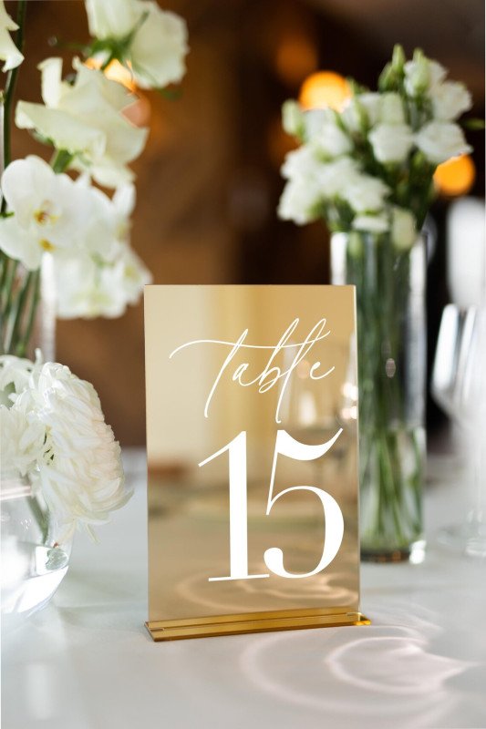 Add a touch of elegance and sparkle to your wedding tables with our stunning Gold Mirror Table Numbers. Perfect for guiding guests to their seats while enhancing your table decor, these table numbers blend functionality with opulent style.