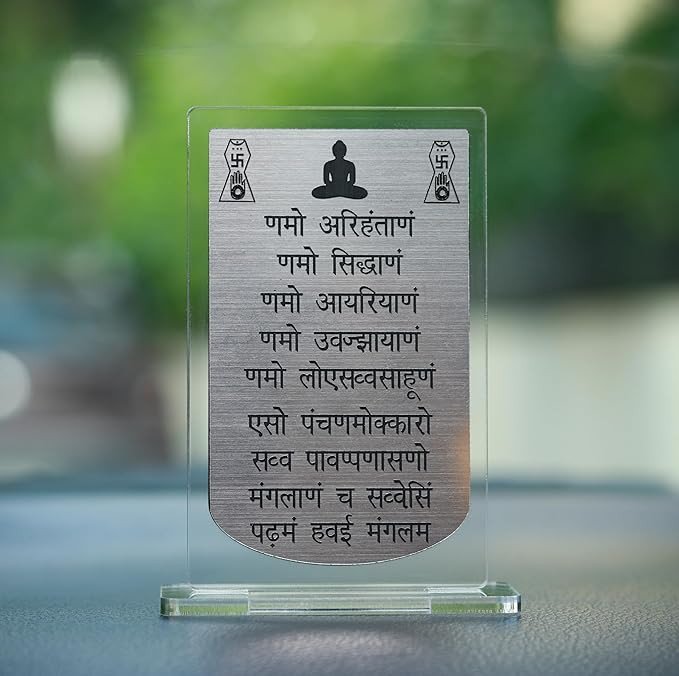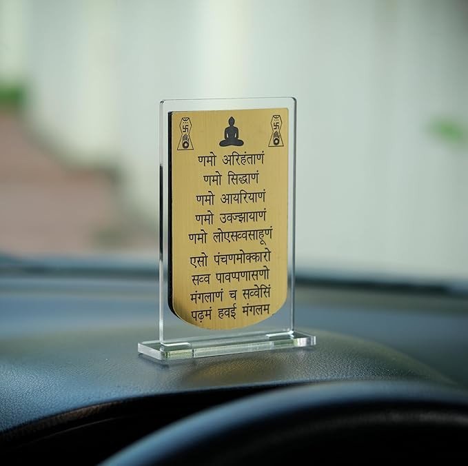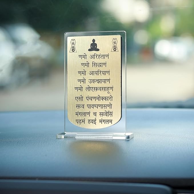1. MAHAVIR SWAMI JI'S NAVKAR MANTRA: Features the sacred Navkar Mantra, bringing spiritual significance to your car, home, or office space.