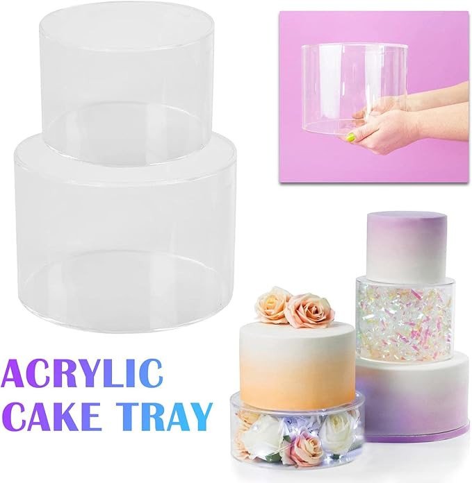 Fully transparent design makes items visible from all sides. Can be used as a top, middle or bottom tier of a celebration cake.