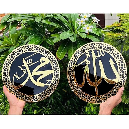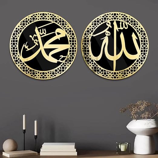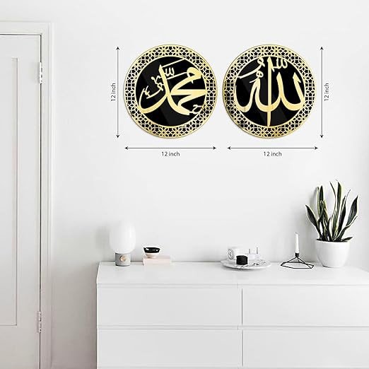 Set of 2 Allah Muhammad Islamic Wall Frame | Islamic Wall Decor For Living Room, Bedroom Home & Office | Ramadan Wall Decorations | Arabic Calligraphy Wall Art Acrylic (12inch x 12inch) Pack of 2